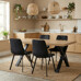Jídelní židle s černým sametovým potahem nabízí příjemný a měkký povrch pro pohodlné posezení. Sedák i opěradlo jsou zdobeny designovým prošitím, které dodává židli elegantní a moderní vzhled. Stabilní kovové nohy v černé barvě zajišťují pevnou oporu a dlouhou životnost. Židle nemá područky, což umožňuje snadné zasunutí pod stůl a úsporu místa. Je vhodná do jídelních prostor i moderně zařízených interiérů.