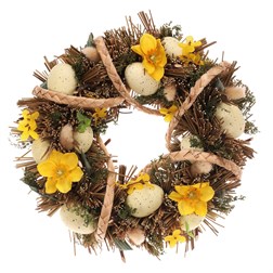 Věnec velikonoční - pr. 24 cm, žlutá vajíčka a květy