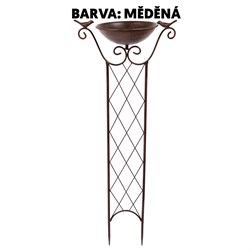 NovinkaKrmítko/pítko - kovový zápich, mřížka, miska s ptáčky, měděné