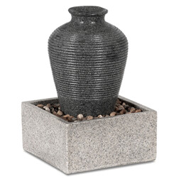 Fontána s LED osvětlením – polyresin, imitace kamene, černo-šedá